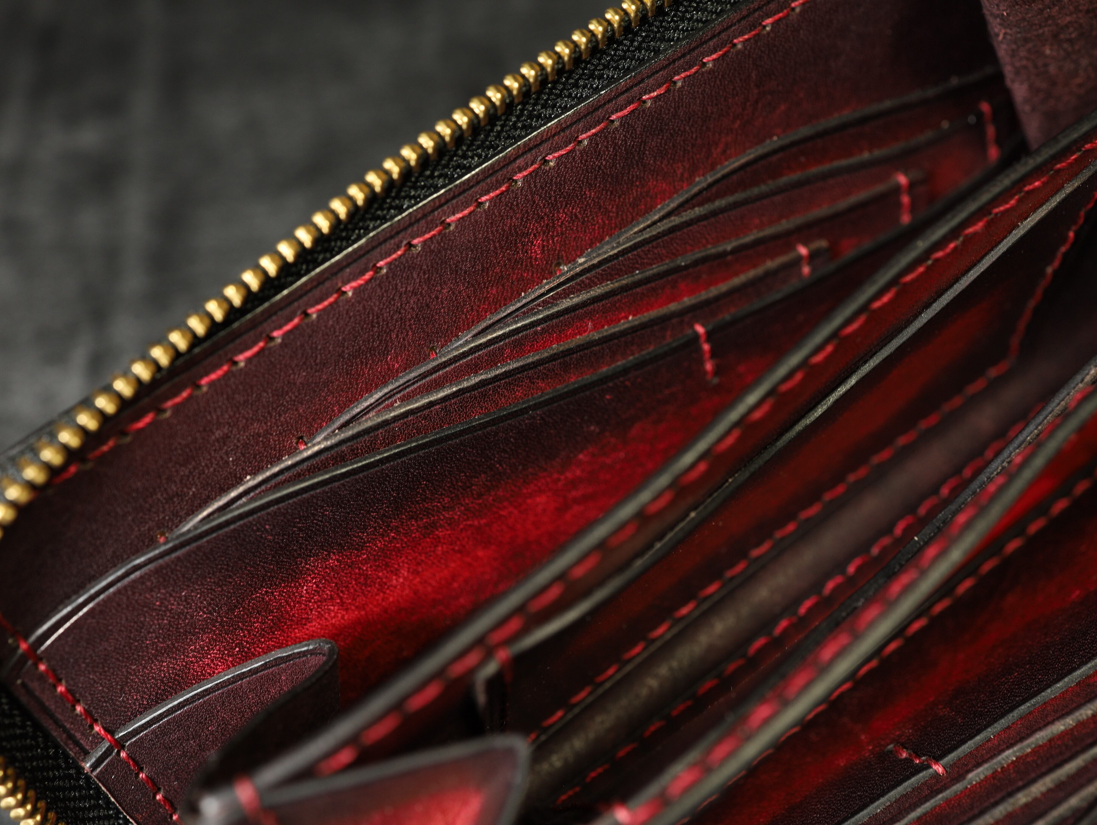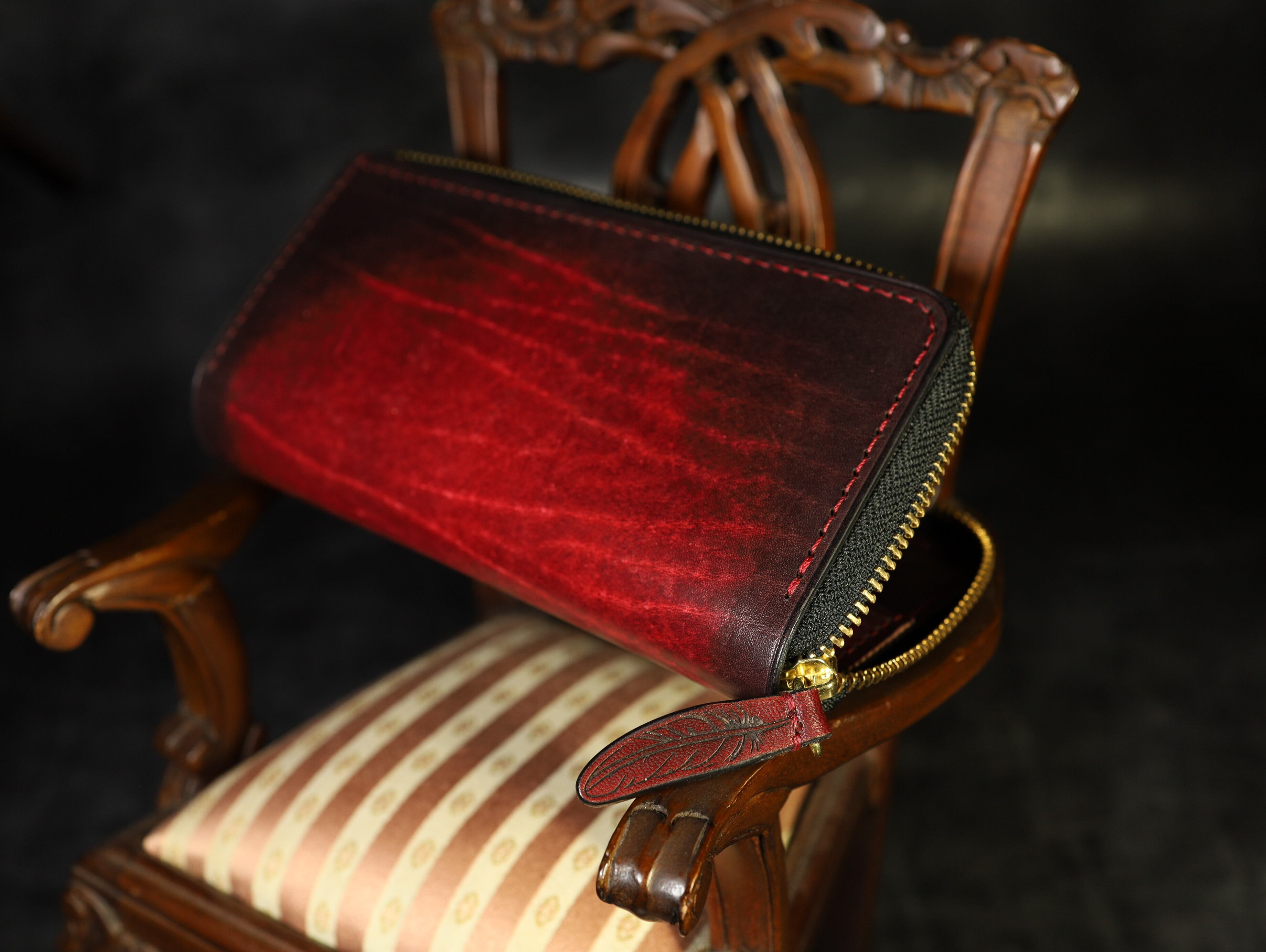 【世界最小クラスの長財布】アンティーク手染めの高級レザー アンティークレッド本革 ギフト プレゼント
