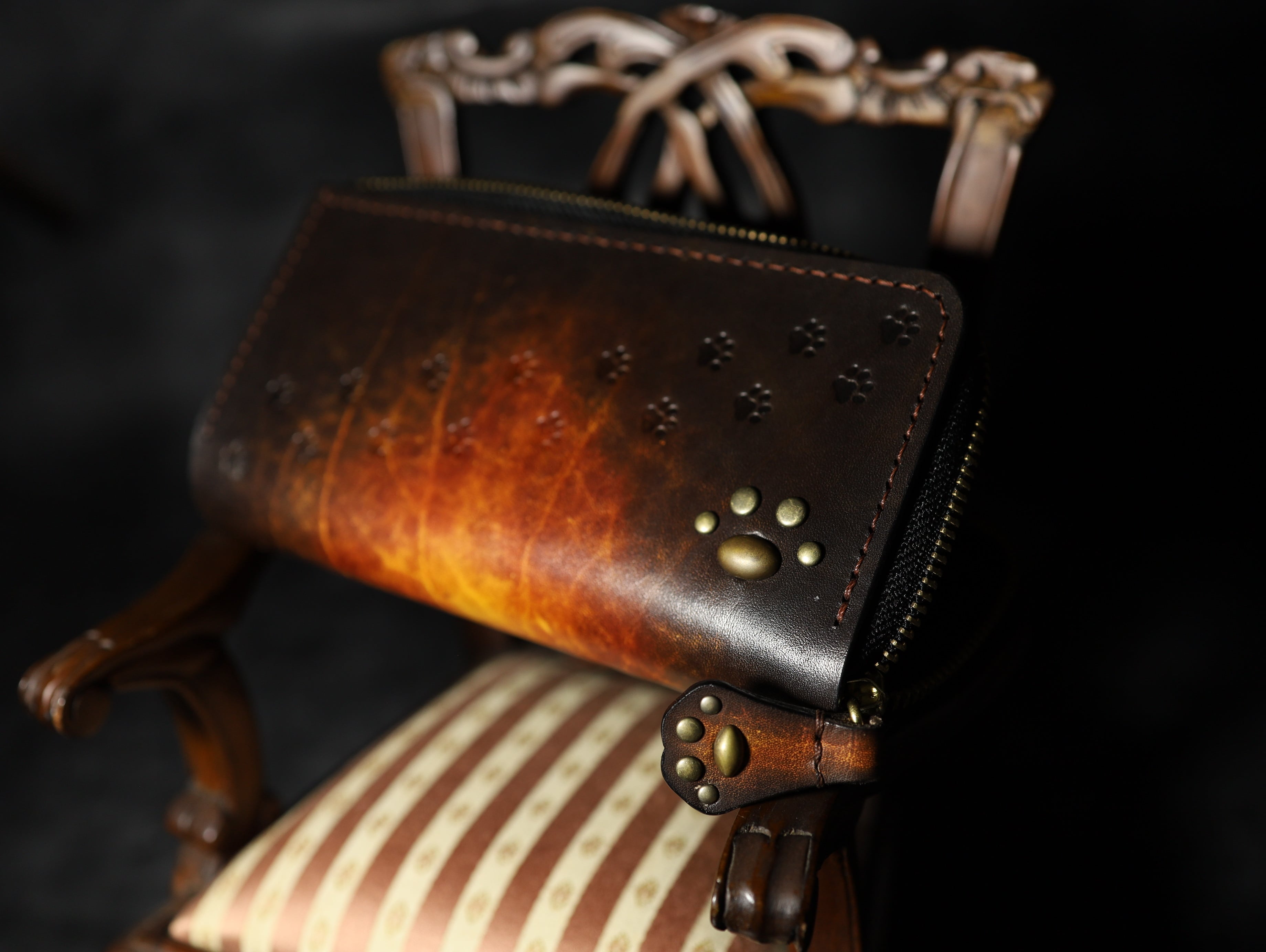 【世界最小クラスの長財布】猫の肉球アンティーク手染めの高級レザー アンティークブラウン本革 ギフト プレゼント