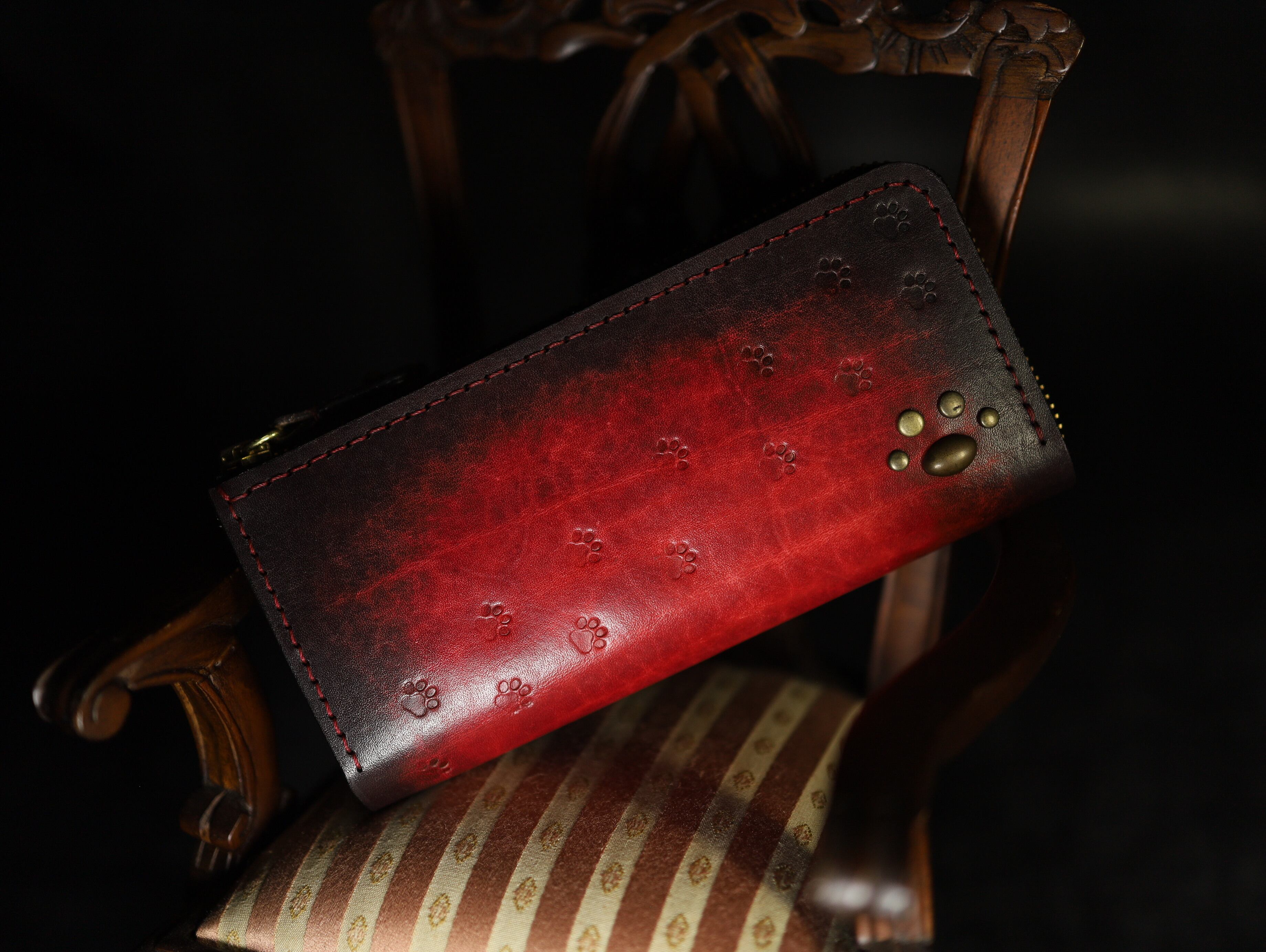 【世界最小クラスの長財布】猫の肉球アンティーク手染めの高級レザー アンティークレッド本革 ギフト プレゼント