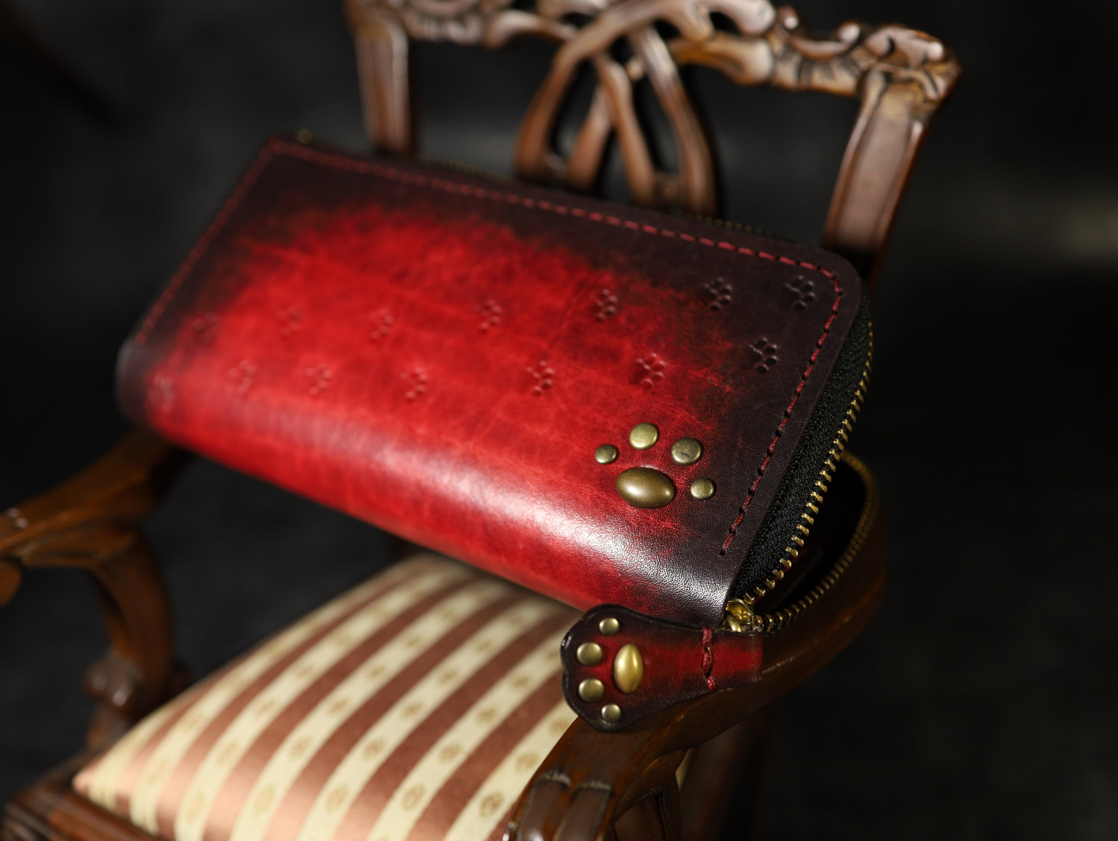 高級ヌメ革を一つ一つ丁寧にアンティーク調に手染めにて染色しております