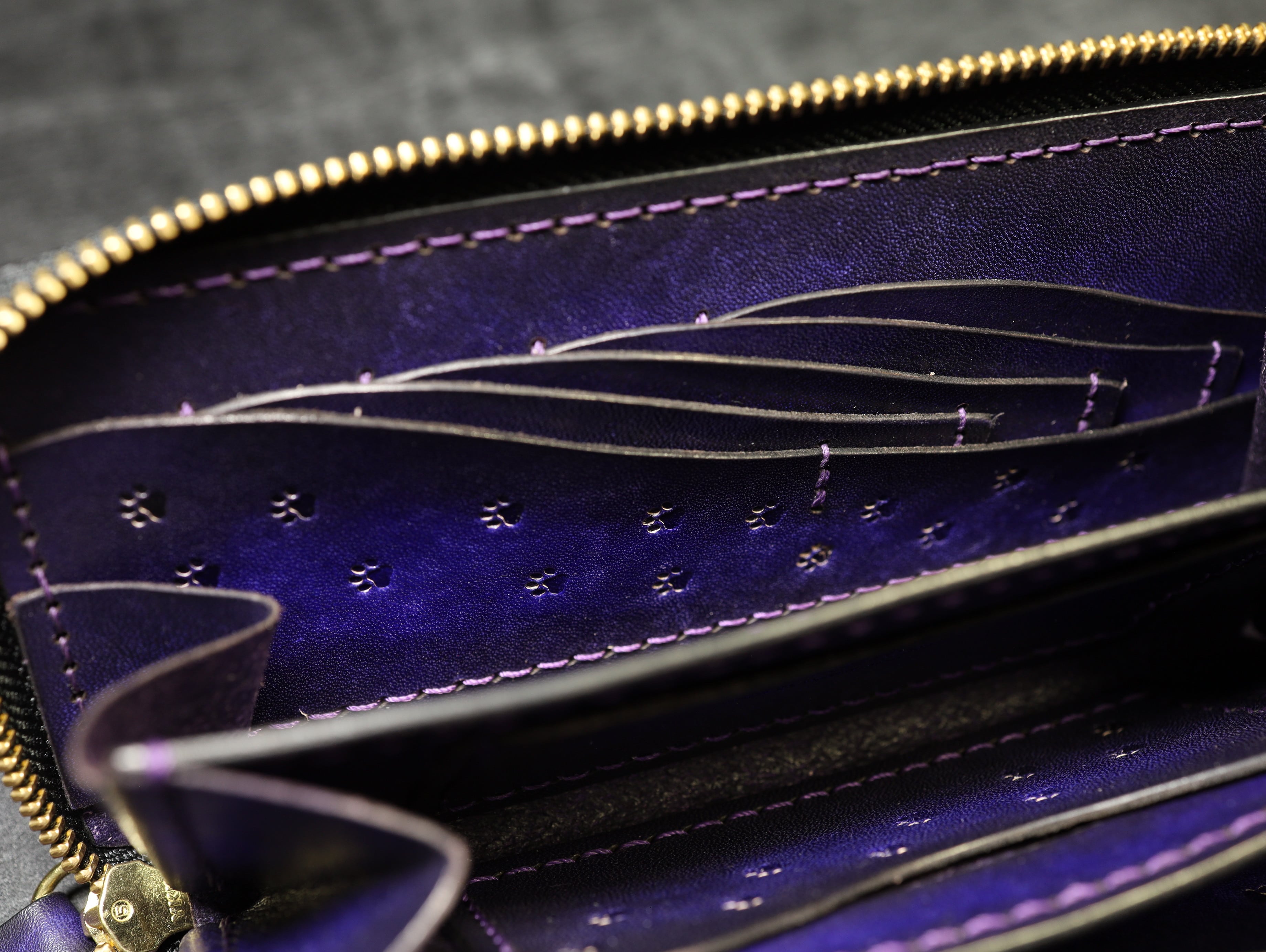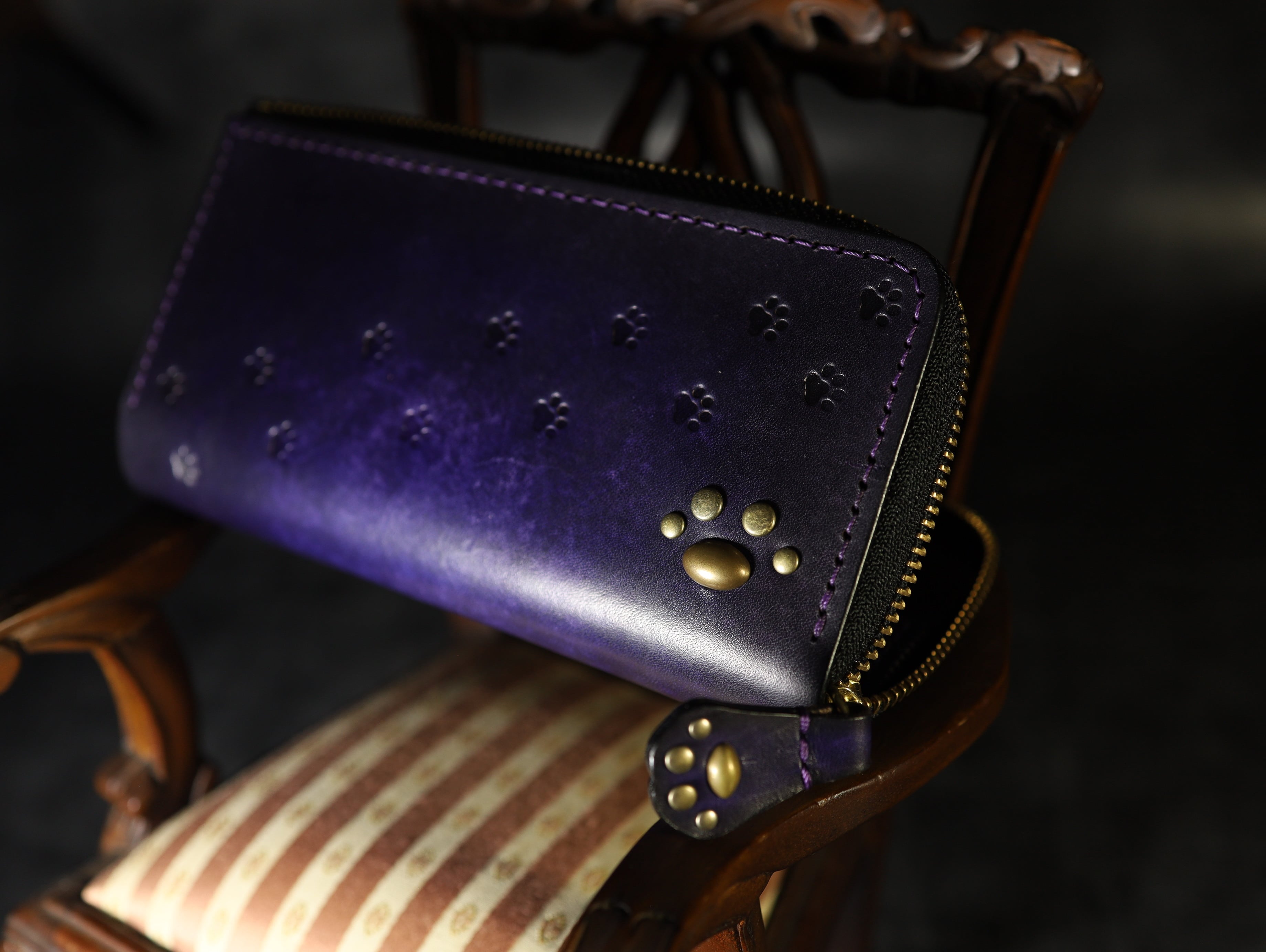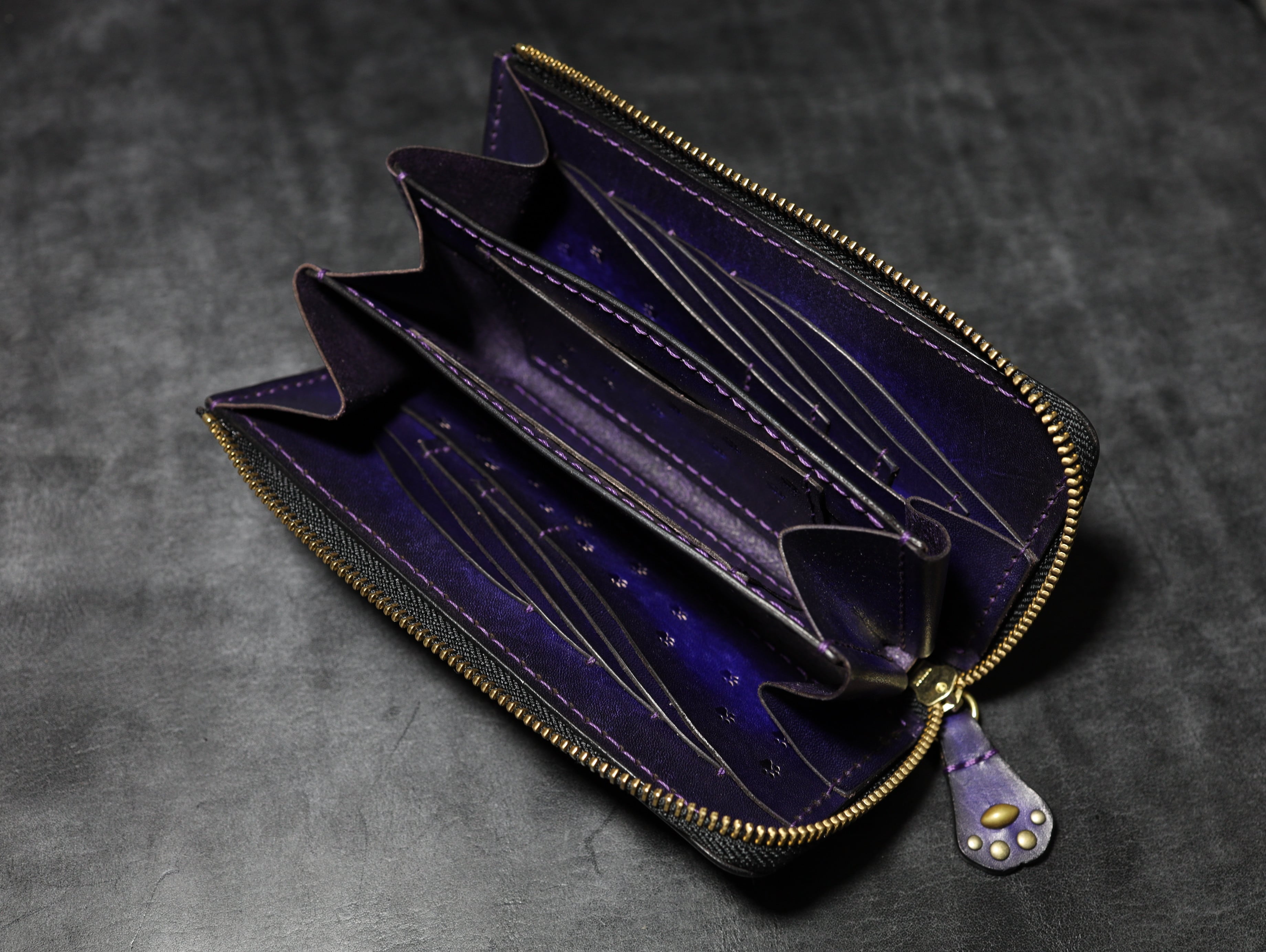 【世界最小クラスの長財布】猫の肉球アンティーク手染めの高級レザー アンティークバイオレット本革 ギフト プレゼント
