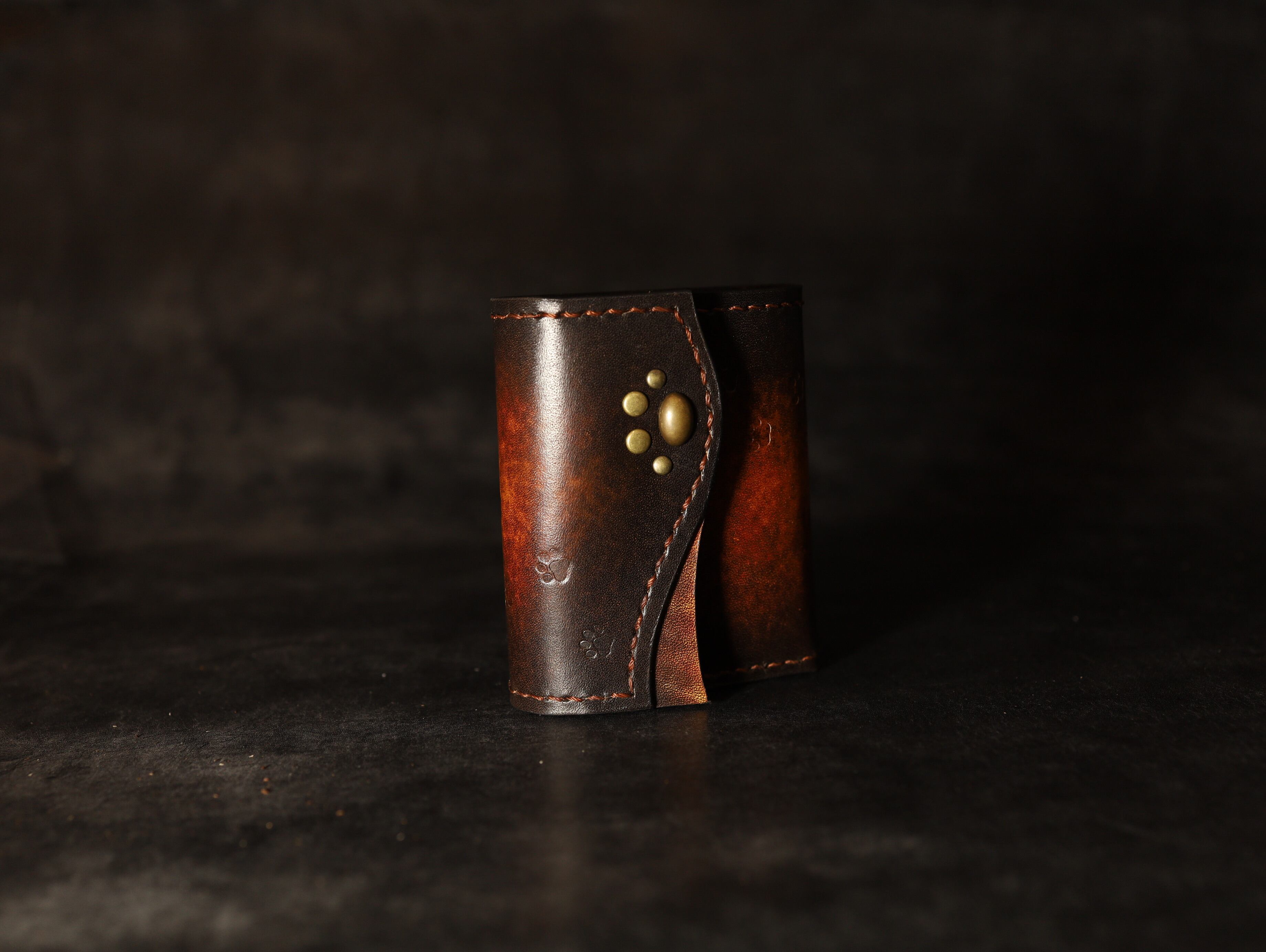 【猫の肉球ミニマム財布】ブラウンアンティーク手染めの高級レザー 本革 ギフト プレゼント