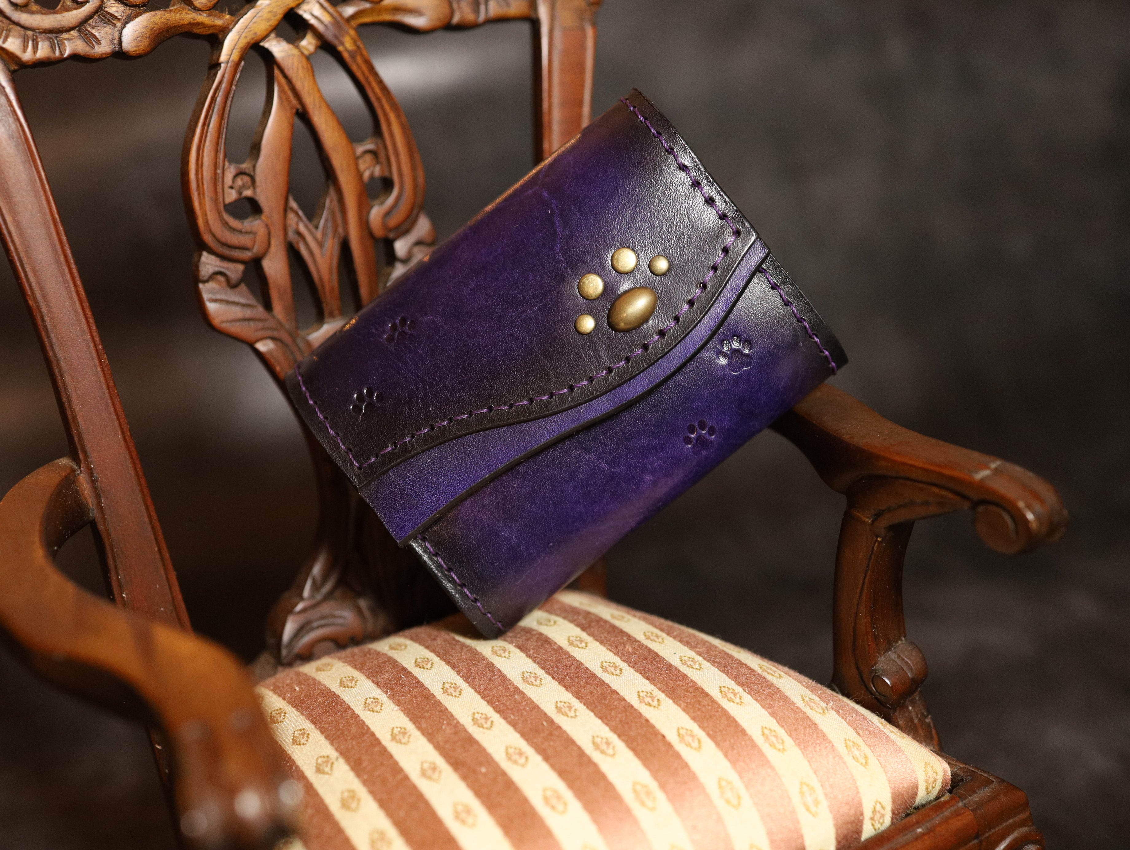 【猫の肉球コンパクトウォレット】バイオレットアンティーク手染めの高級レザー 本革 ギフト プレゼント