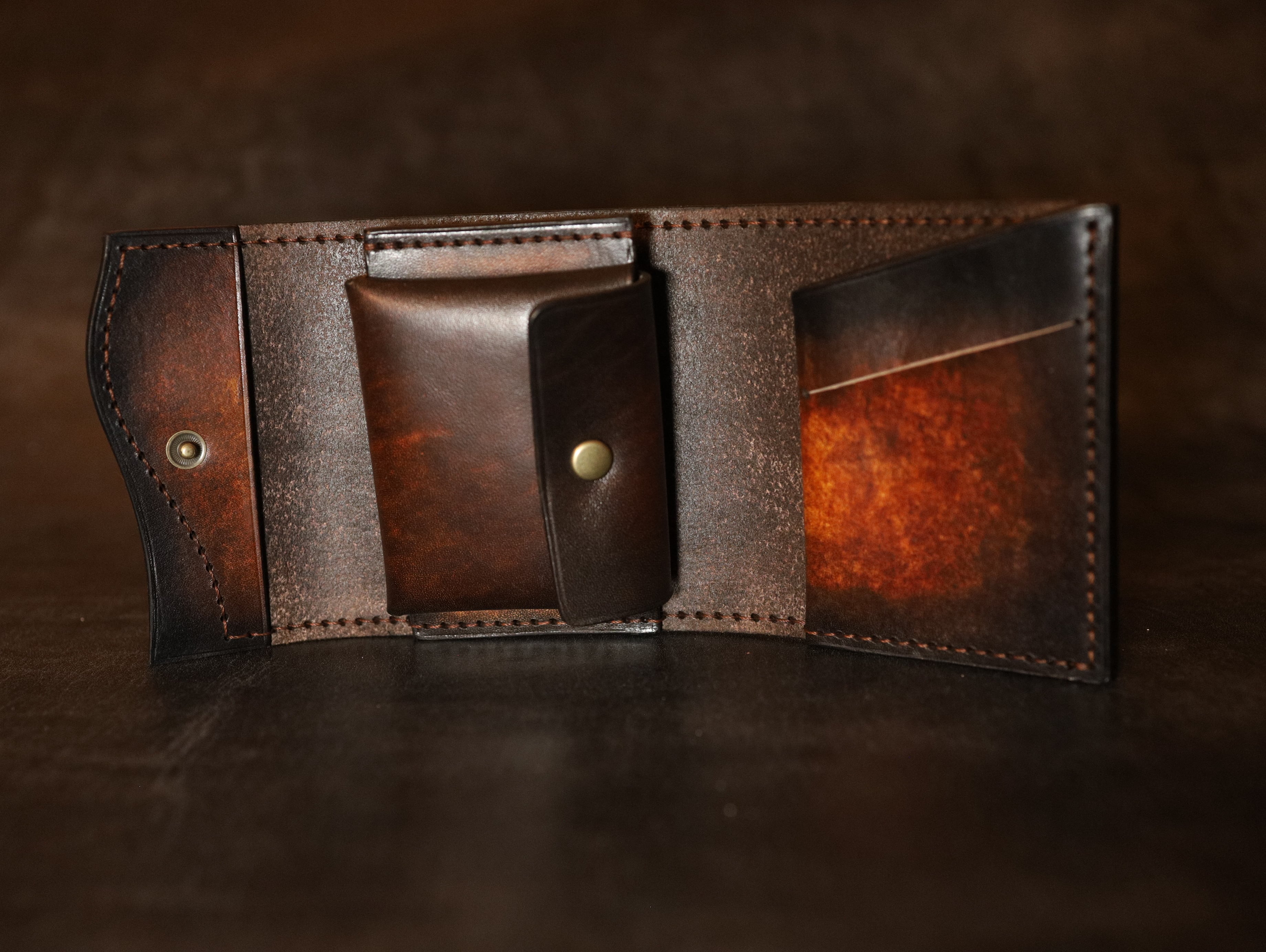 【ミニマム財布】ブラウンアンティーク手染めの高級レザー 本革 ギフト プレゼント