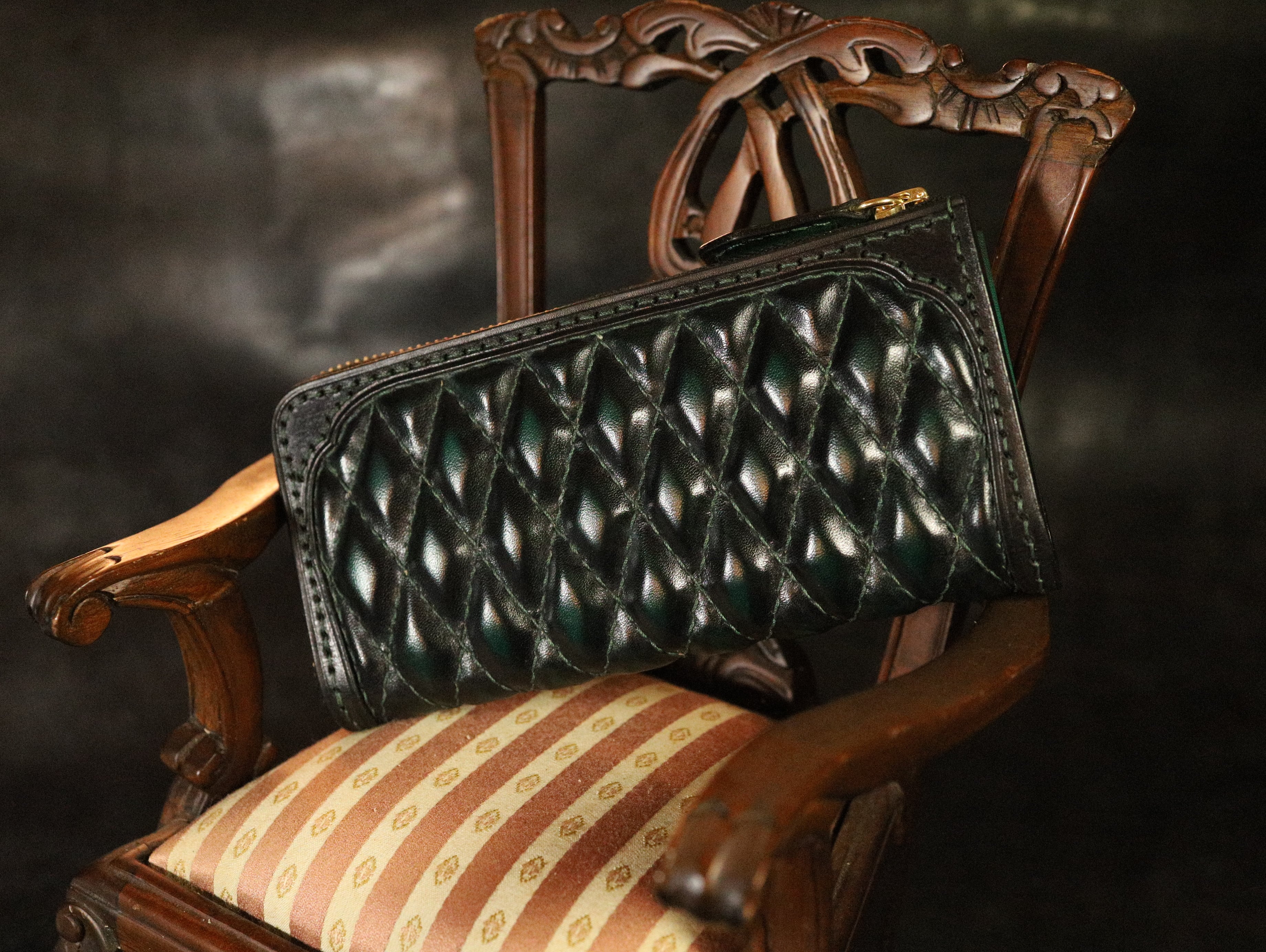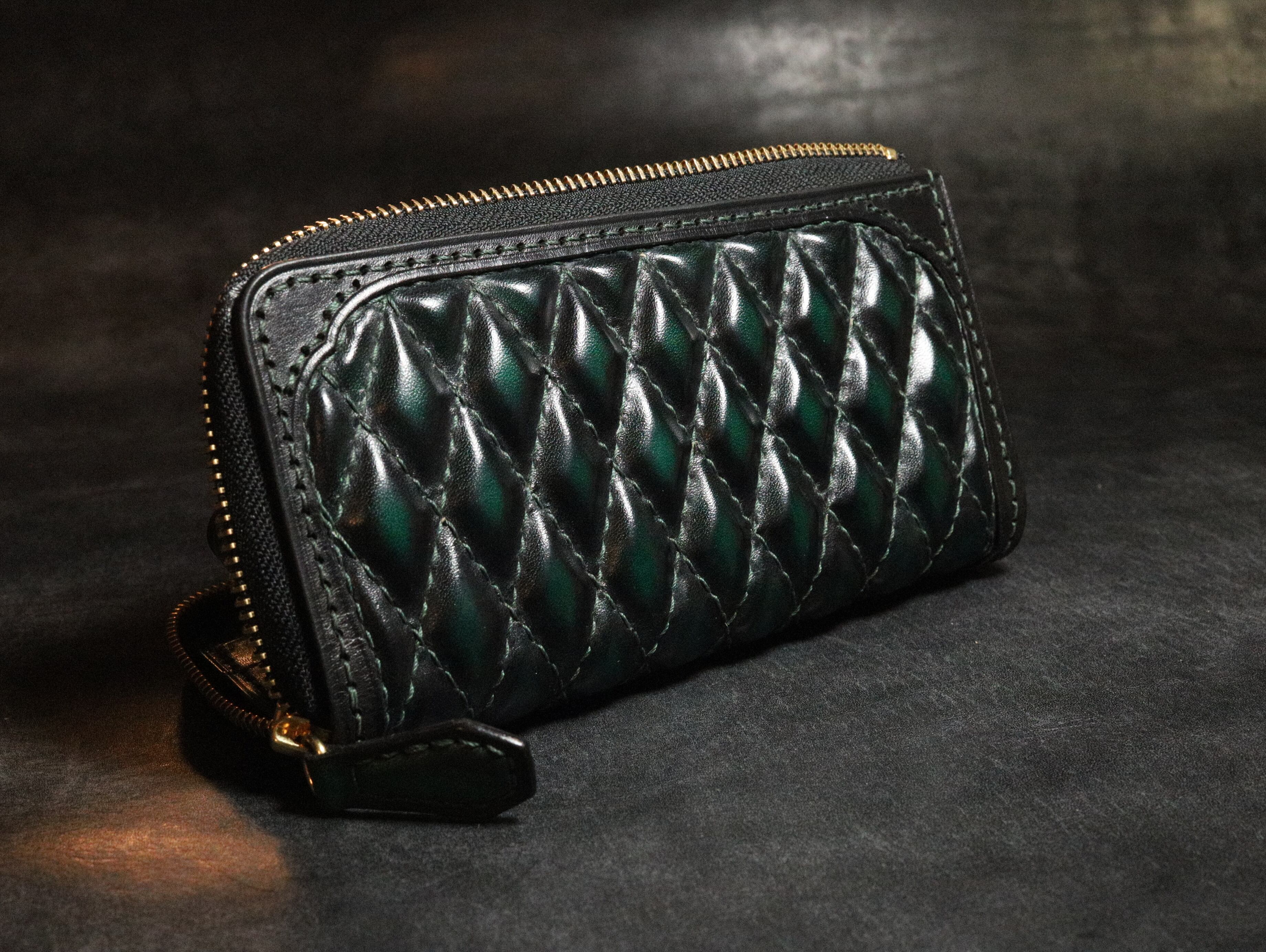 ダイヤモンドステッチの長財布【世界最小クラスの長財布】L字ファスナー